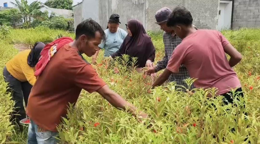 BERITACIKARANG.COM, TAMBUN UTARA – Menjelang Lebaran, sejumlah warga di Desa Srimukti, Kecamatan Tambun Utara, Kabupaten Bekasi, sibuk memetik kelopak bunga Tihong, Jum’at (20/03) pagi. Bunga yang dikenal sebagai bunga tabur ini memiliki tiga jenis warna, yaitu merah, putih, dan merah muda.